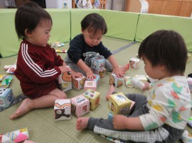 0,1歳児の桃組のお部屋には、今年度から新しく5人のお友達が入園しました。