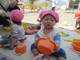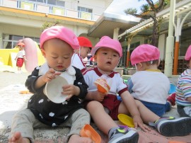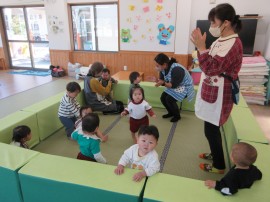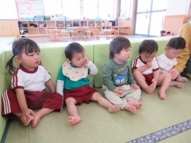 桃組さん(0.,1歳児)の園生活の始まりです。