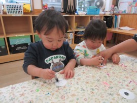 登園時に涙が出てしまう子もいますが、日中は先生やお友達と歌を歌ったり、製作をしたり、天気の良い日にはお外で遊んだりと、楽しく笑顔で過ごせるようになってきました。